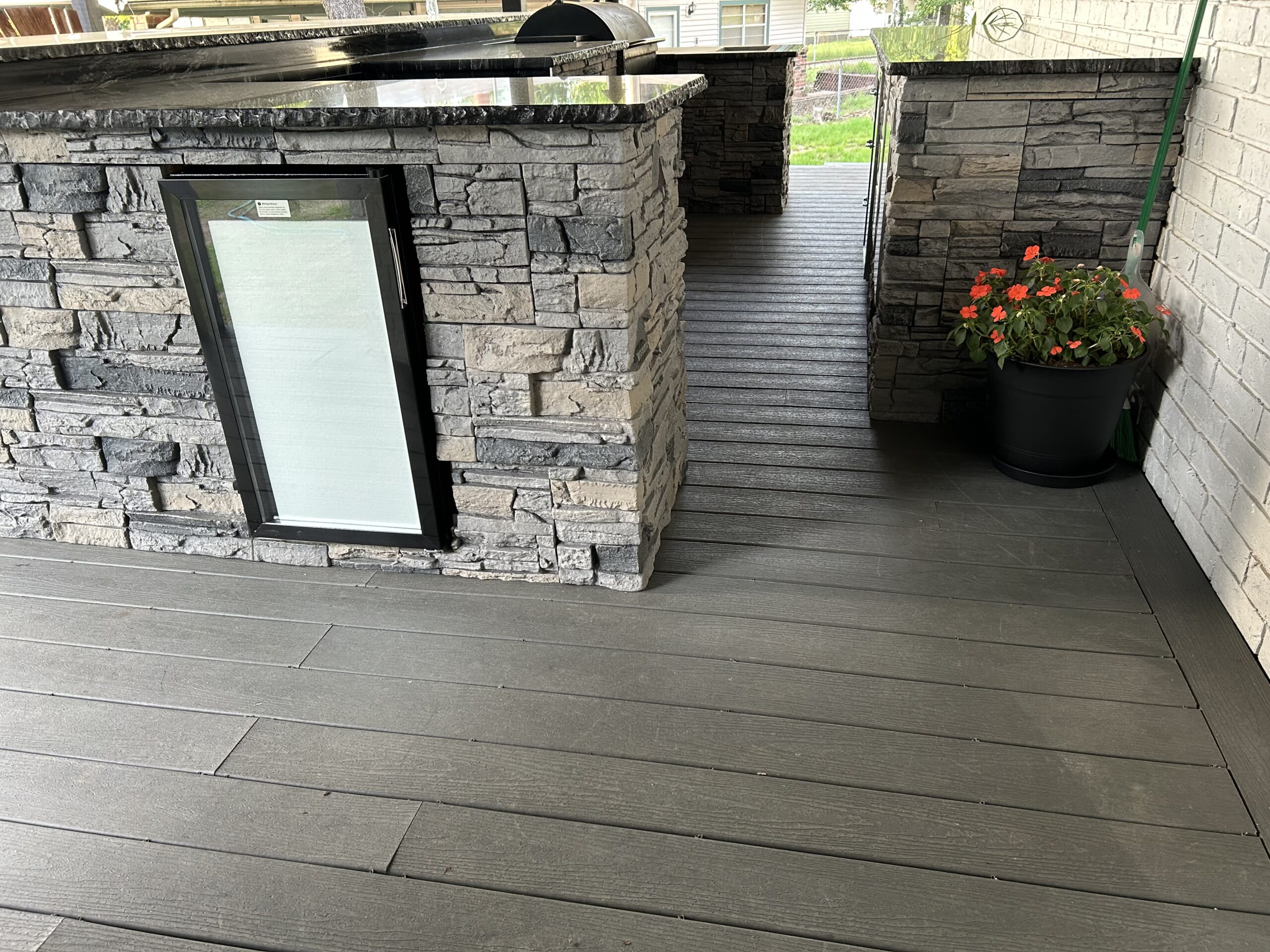 The Northern Slate Outdoor Kitchen product was chosen for its realistic stone appearance and durability. Its multi-toned gray hues capture the essence of natural slate, providing timeless curb appeal and seamlessly blending with outdoor elements like wood, stainless steel, and landscaping. With GenStone’s weather-resistant panels, Chris’s outdoor kitchen will maintain its beauty through every season, offering both style and long-lasting performance.