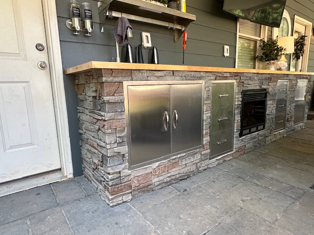 Matthew Pastore transformed his backyard into an entertainer’s paradise with a stunning DIY stone outdoor kitchen using GenStone’s Kenai Outdoor Kitchen panels. The project features a spacious countertop, built-in grill, and sleek cabinetry, all wrapped in the authentic look of natural stone. This outdoor kitchen not only elevates the home’s value but also creates a welcoming space for family gatherings and summer barbecues.