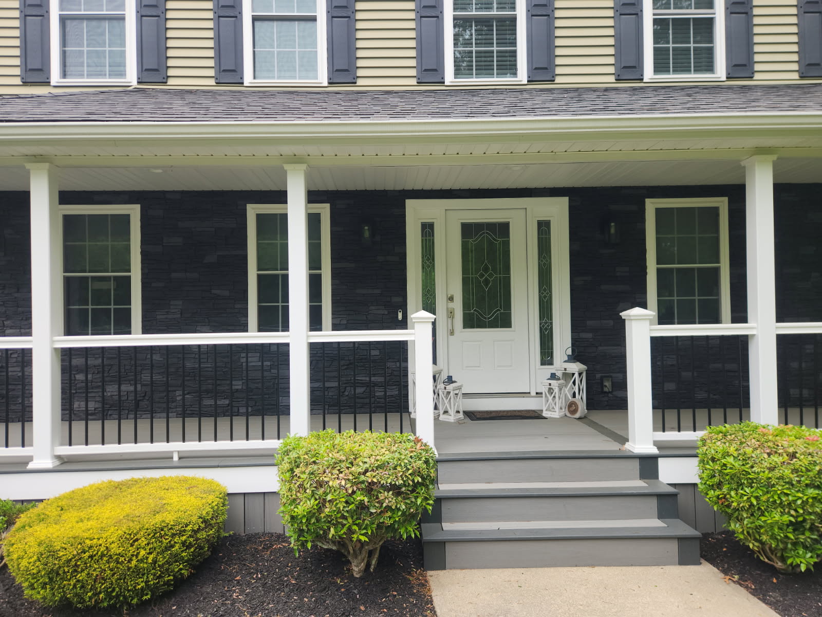 Choosing a black stone accent wall delivers a timeless, dramatic statement that complements a wide range of design styles—from contemporary to rustic. The deep, rich tones of the Iron Ore panels add depth and texture, making the front entry a true focal point. This color choice not only enhances curb appeal but also creates a welcoming, luxurious atmosphere for guests.