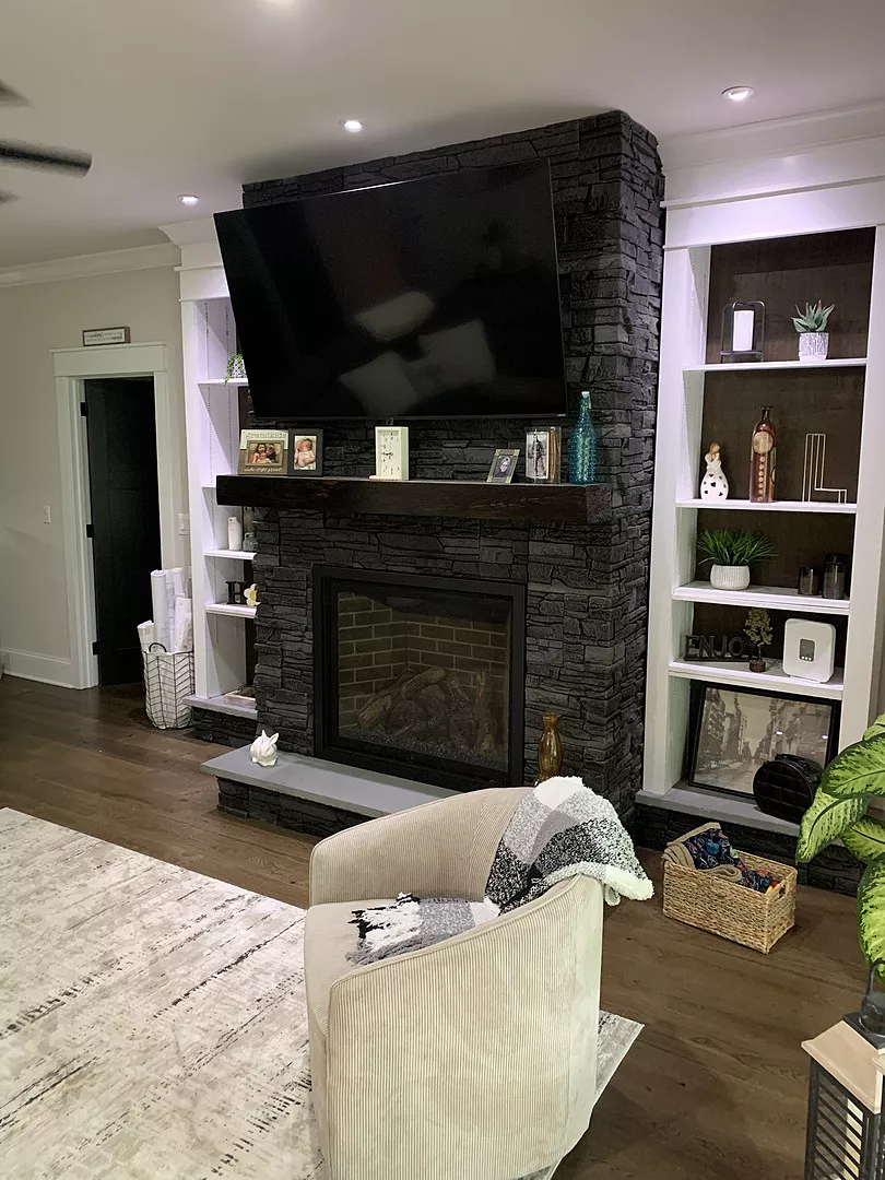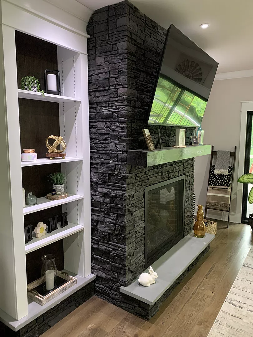 Patrick Leahan transformed his living space with a stunning black rock fireplace using the GenStone Iron Ore Fireplace panels. This project features deep charcoal tones and realistic rock textures that create a dramatic focal point, blending modern elegance with natural beauty. The Iron Ore panels pr... Expand full text